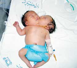دکتر سعيدي در ادامه گفت: تولد کودکي با اين شکل يک مورد نادر است و از هر 50هزار مورد ممکن است فقط يکي از آنها بصورت به هم چسبيده به دنيا بيايند، اما اين مساله ربطي به سن مادر، تعداد زايمان و استفاده از داروهاي محرک باروري ندارد. |